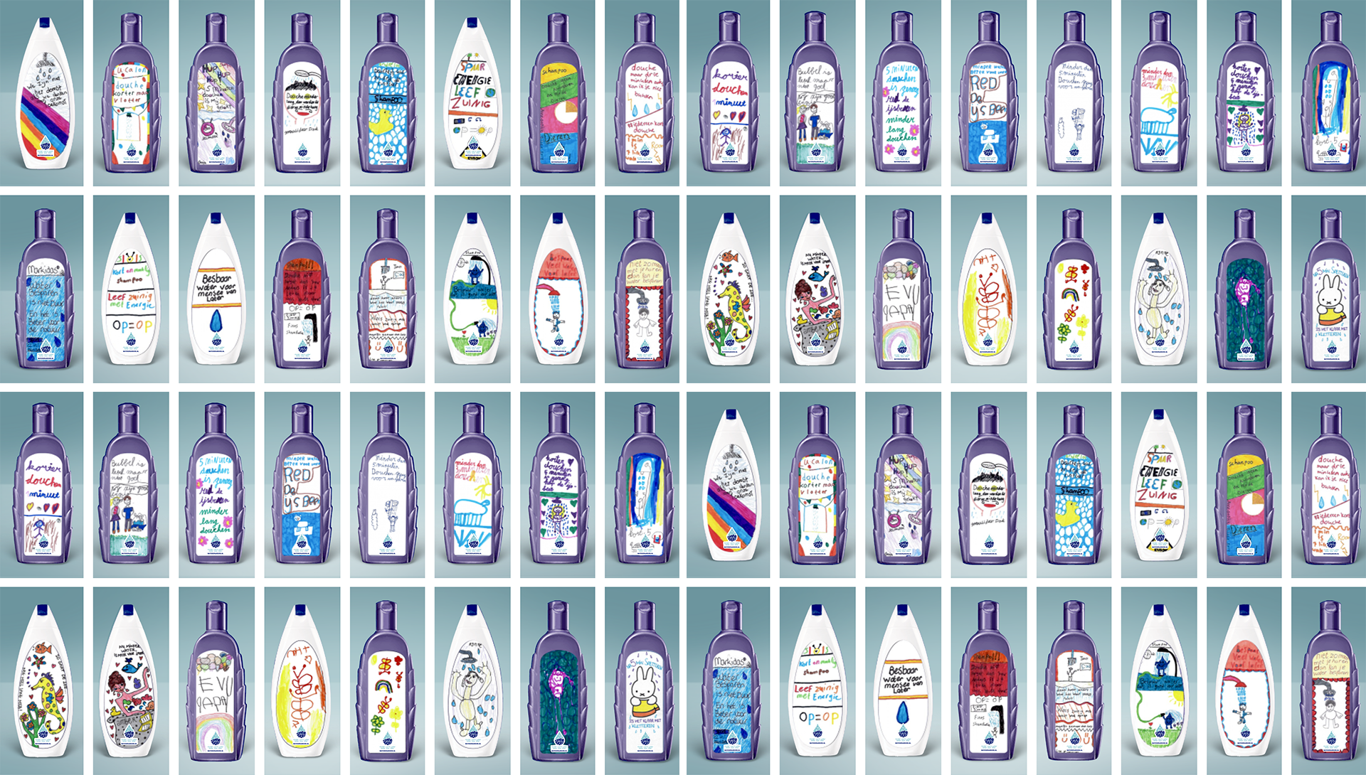 Kids created over 15.000 unique bottles that became tactival billboards in their parents' showers. |